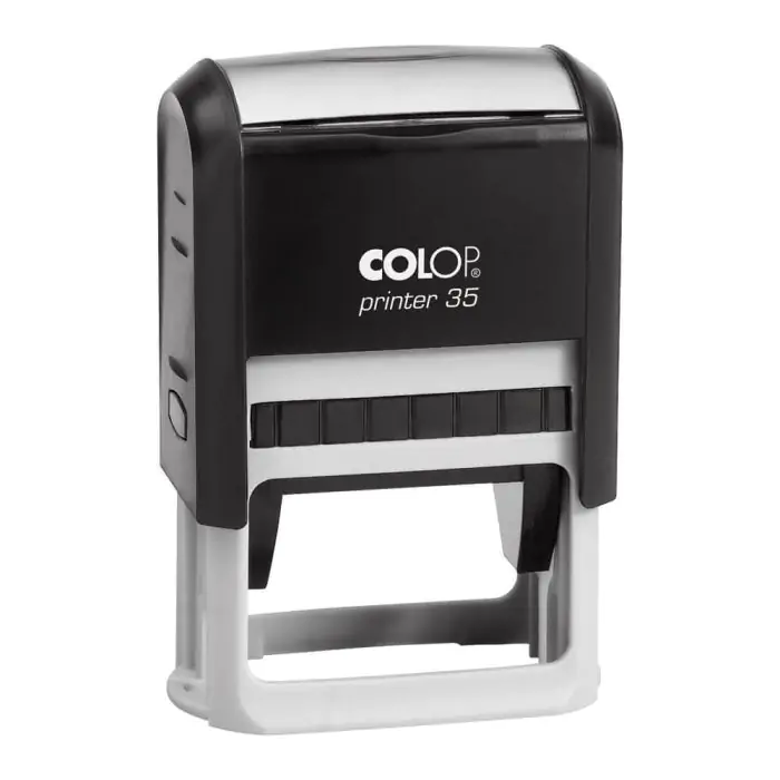 COLOP Printer 35 ir ērts paškrāsojošs zīmogs ar taisnstūra nospieduma laukumu 50 x 30 mm, ideāli piemērots līdz 7 rindām teksta un adresēm ar vai bez logotipiem.