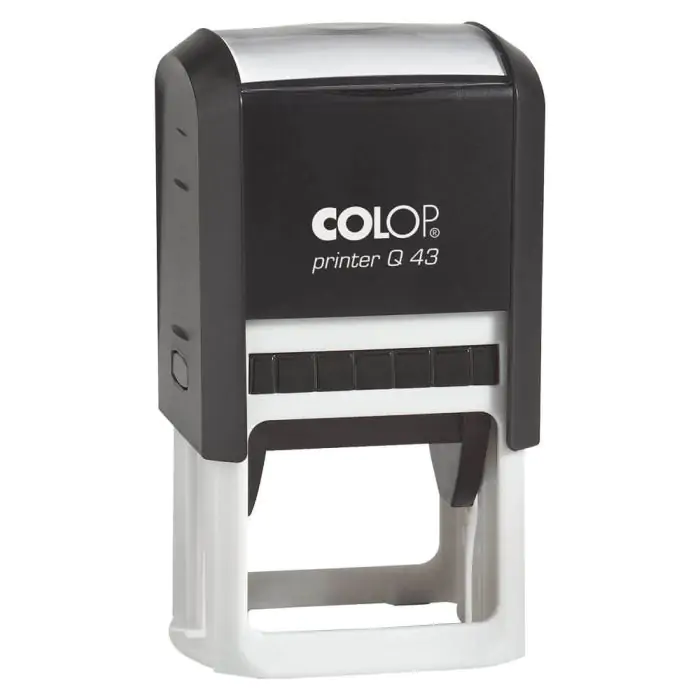 COLOP Printer Q 43 ir lielākais kvadrātveida tekstu zīmogs COLOP Printer sērijā, piedāvājot nospieduma laukumu 43 x 43 mm, ideāli piemērots līdz 10 rindiņām tekstam.