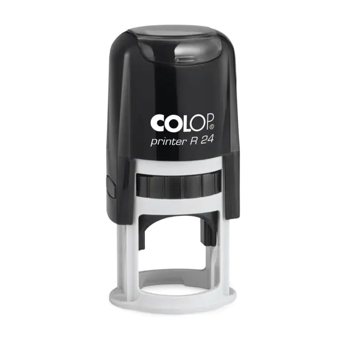 COLOP Printer R 24-round ir būtisks apaļais zīmogs ar 24 mm diametru, ideāli piemērots oficiāliem zīmogiem, notāru zīmogiem, biedrībām un vispārējai biznesa lietošanai.